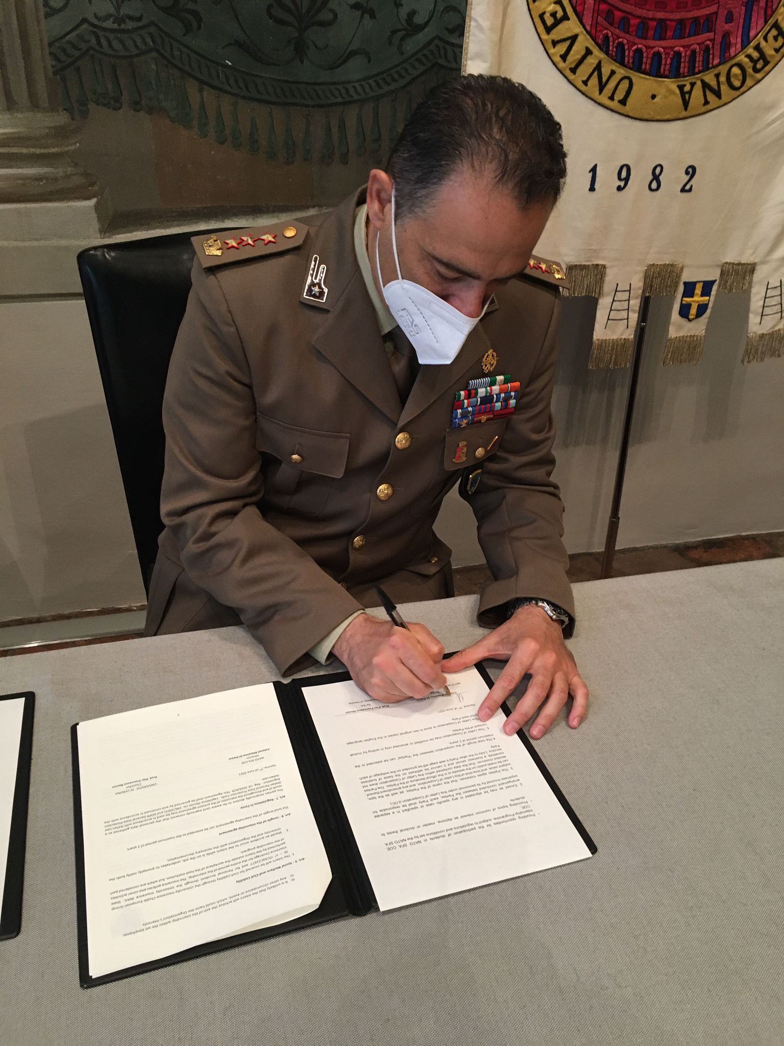 On the 7th of June 2021, the Director of the NATO Security Force Assistance Centre of Excellence (NATO SFA COE), Col. Massimo DI PIETRO, and the Rector of the University of Verona, Prof. Pier Francesco NOCINI, signed an agreement of cooperation.