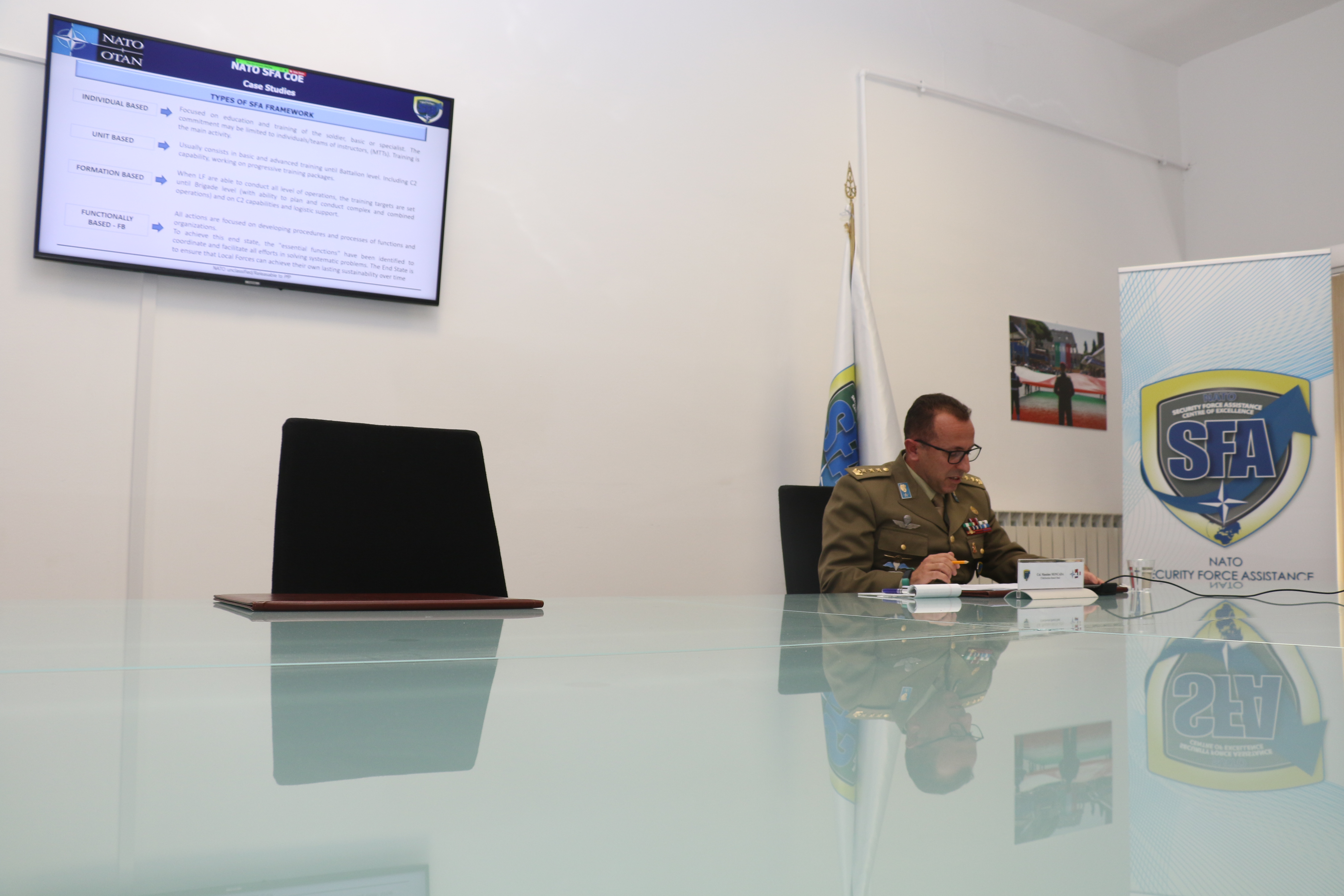 He also described the NATO SFA COE line of efforts, its policy and vision, highlighting how the Centre is enriched by research based on best practices and lessons learned, in the NATO doctrinal revision process or in drafting and delivering independent research papers and publications.
