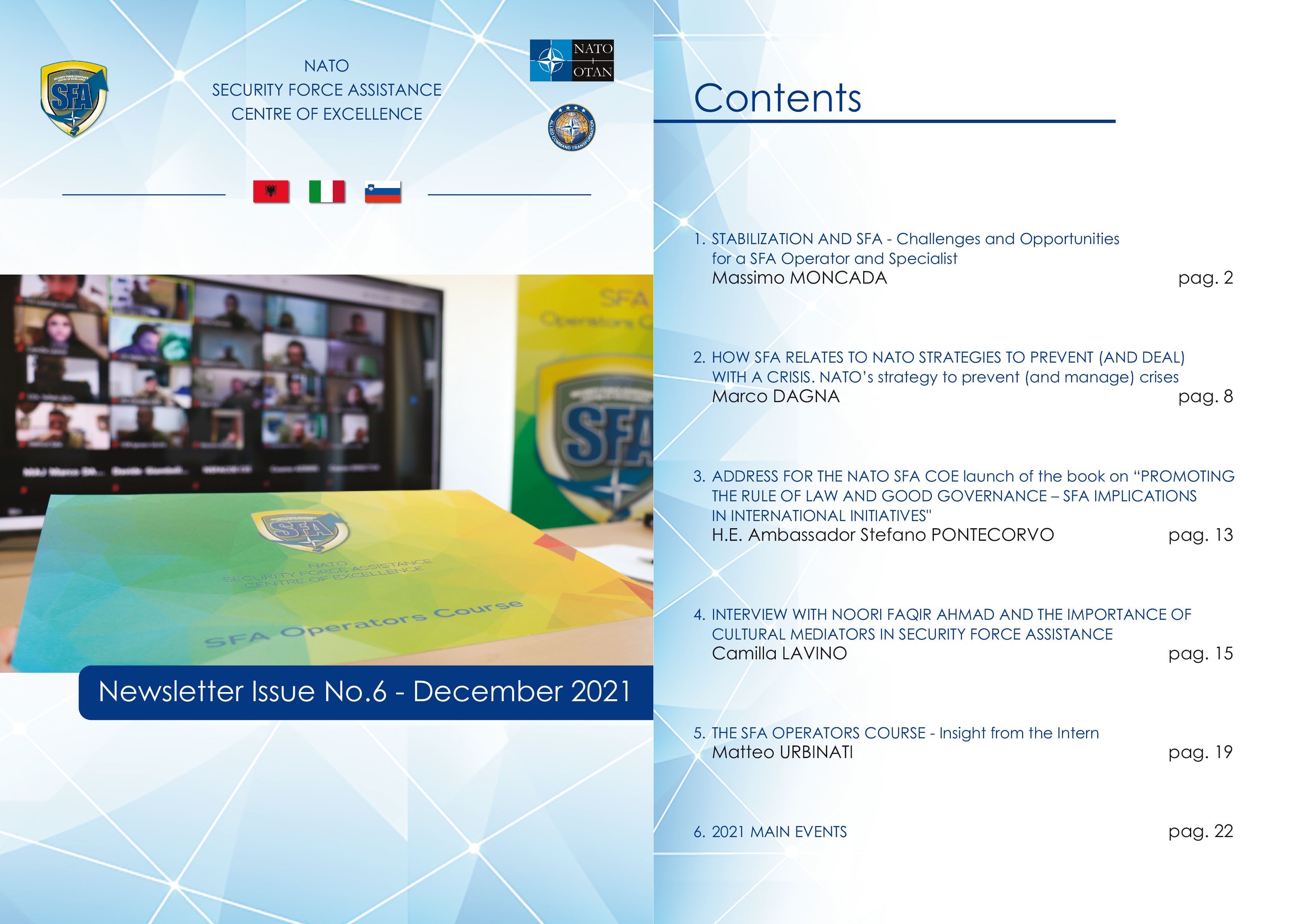 With great satisfaction the NATO Security Force Assistance Centre of Excellence presents the closing year newsletter n. 6/2021, which demonstrates the unwavering commitment of this COE in the service of the Alliance and its Partners.