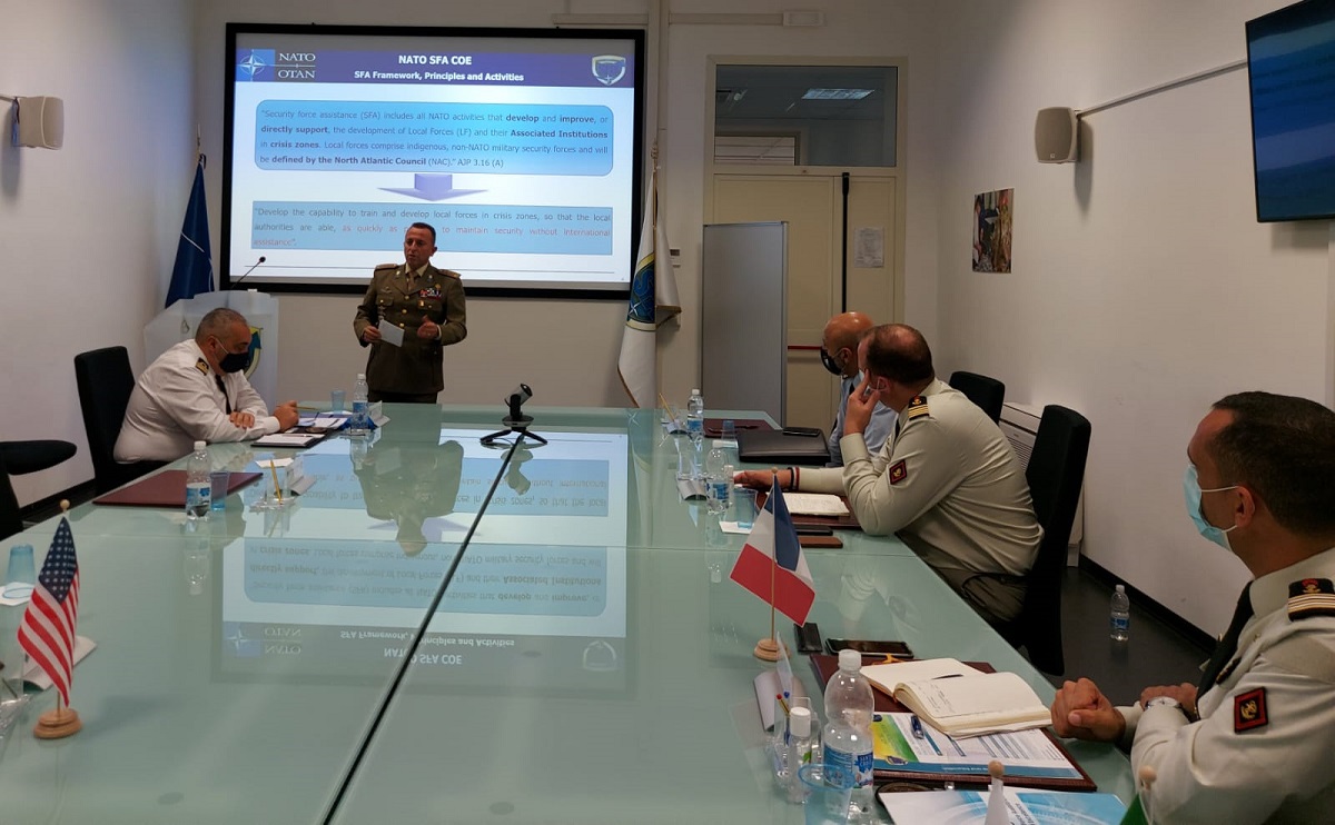 The NATO SFA COE Director, Col Massimo Di Pietro, illustrated the NATO SFA doctrine and principles and the main differences with the US doctrine. Subsequently, he explained the important role of the SFA COE in developing new concepts and ideas from SFA best practices and Lessons Learned. Some of these ideas becomes financed projects such as publications, training offers and study research for the benefit of NATO interoperability in the SFA field.